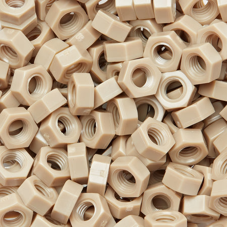 PEEK (GF30) -kuusiokantamutterit ovat suorituskykyisiä komponentteja, joita käytetään eri teollisuudenaloilla, joilla tarvitaan luotettavaa kiinnitysratkaisua, jolla on erinomaiset mekaaniset, termiset ja kemialliset ominaisuudet. Nämä mutterit tunnetaan korkeasta lujuudestaan, jäykkyydestään ja kestävyydestään vaativissa ympäristöissä, joten ne ovat ihanteellinen valinta sovelluksiin, jotka vaativat suorituskykyisiä kiinnittimiä.