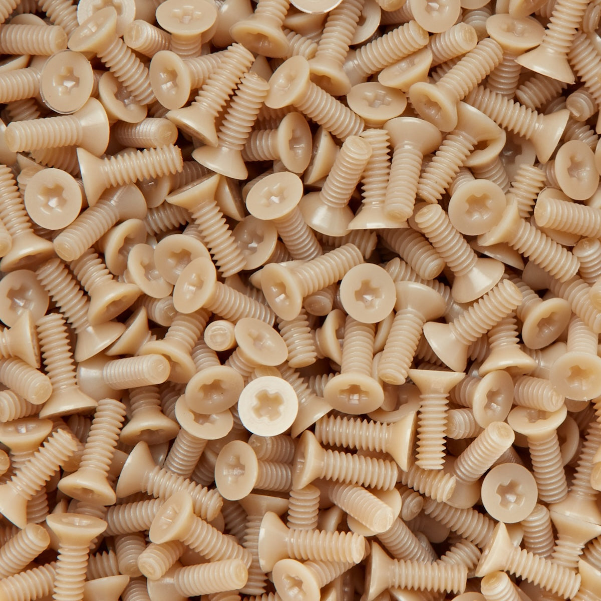 PEEK-mikrokantaruuveja (tunnetaan myös nimellä litteäpää) on saatavana mikrokokoja M1.2-M1.6 ja pituudet 2.5mm-4mm.