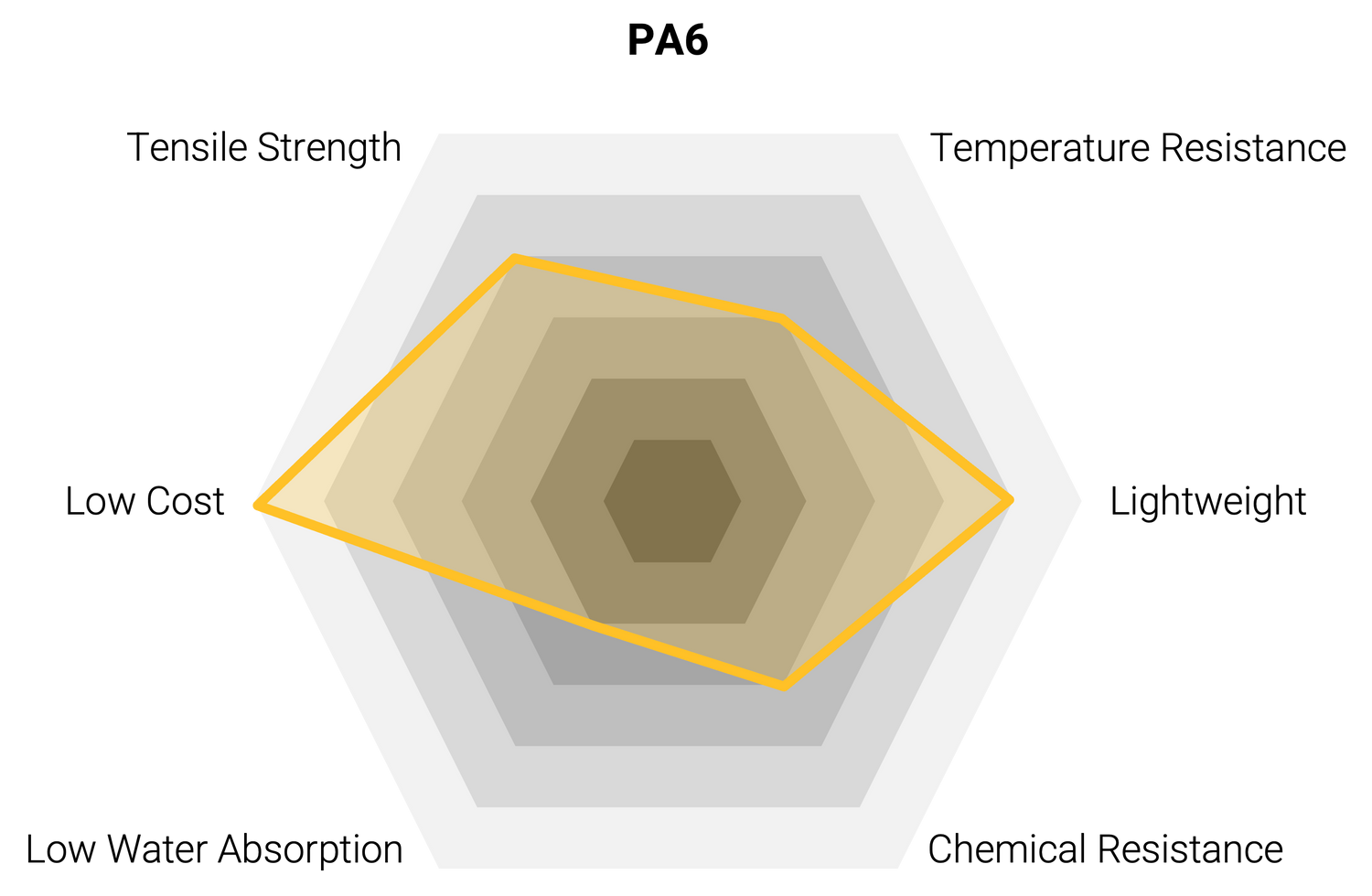 Kaikki muut vaihtoehdot valmistetaan PA6:sta.