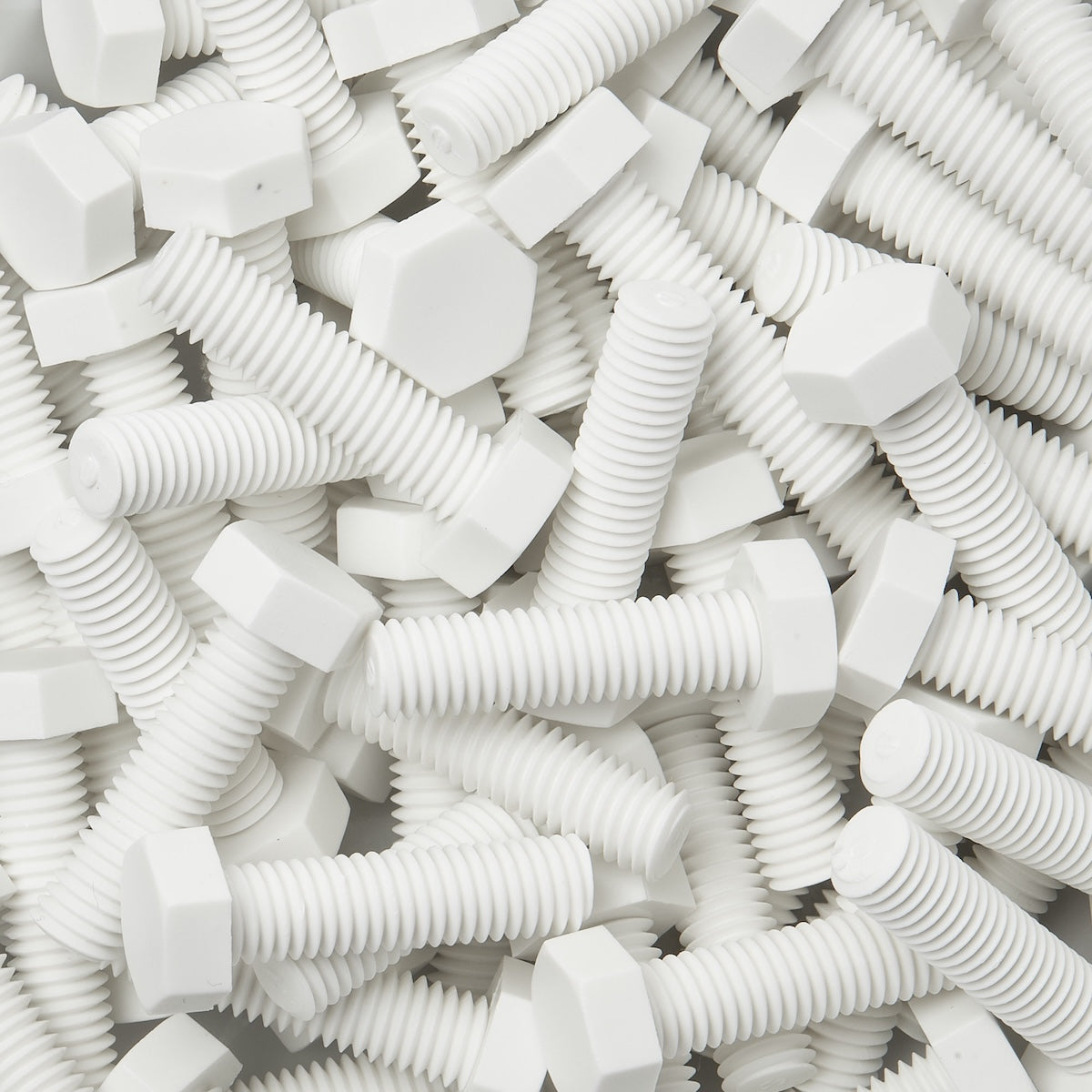 Polypropeenin (PP) kuusiokoloruuvit ovat erinomaisia yleiskäyttöisiä polymeeriruuveja, ja niitä käytetään yleisesti monissa eri sovelluksissa. PP on yksi kevyimmistä tarjoamistamme materiaaleista, sillä sen ominaispaino on 0,9. Tämä yhdistettynä erinomaiseen kemikaalien ja hydrolyysin kestävyyteen sekä sähköiseen eristykseen tekee PP:stä erinomaisen kiinnittimen yleiskäyttöisiin sovelluksiin.
