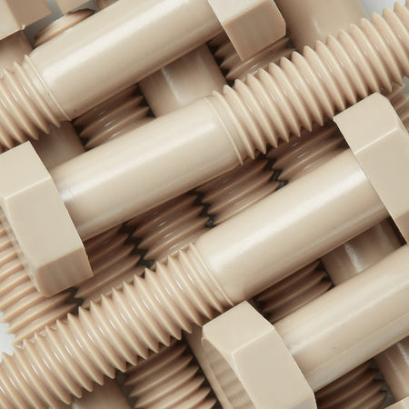 PPS-ruuvivalikoimamme on vahvistettu 40 % lasikuidulla, mikä mahdollistaa vetolujuudet, jotka ovat samanlaiset kuin PEEK GF30 -valikoimassamme (30 % lasikuituvahvisteinen), mutta paljon suuremmalla kokovalikoimalla ja alhaisemmilla kustannuksilla.