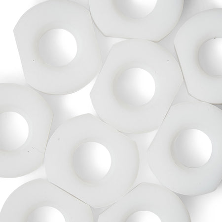 PTFE- tai "teflon"-kaksoismutterimme valmistetaan 100-prosenttisesta PTFE:stä, niitä ei pidä sekoittaa pinnoitettuun ruostumattomaan teräkseen. PTFE:n käyttäminen ainoana materiaalina mahdollistaa poikkeuksellisten ominaisuuksien osoittamisen ilman kompromisseja.